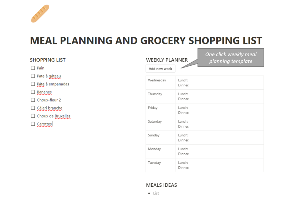 Meal planning and grocery shopping list Notion template